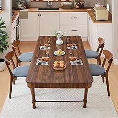 78 Inch Fluted Kitchen Dining Table for 6 8 10, Large Rectangular Kitchen Table with Drawers, Modern Farmhouse Long Dinner Table Dining Room Tables with Solid Wood Legs for Home Living Room, Walnut