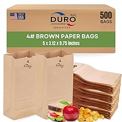 Duro 4# Brown Paper Lunch Bag 500 Count - Ideal for Sandwiches, Candy, Treats, Popcorn, Snacks, Bread & Cookies, Dubl Life SOS Disposable Recycled Kraft Brown Paper Bags Lunch Size, 5x3.12x9.75 Inches