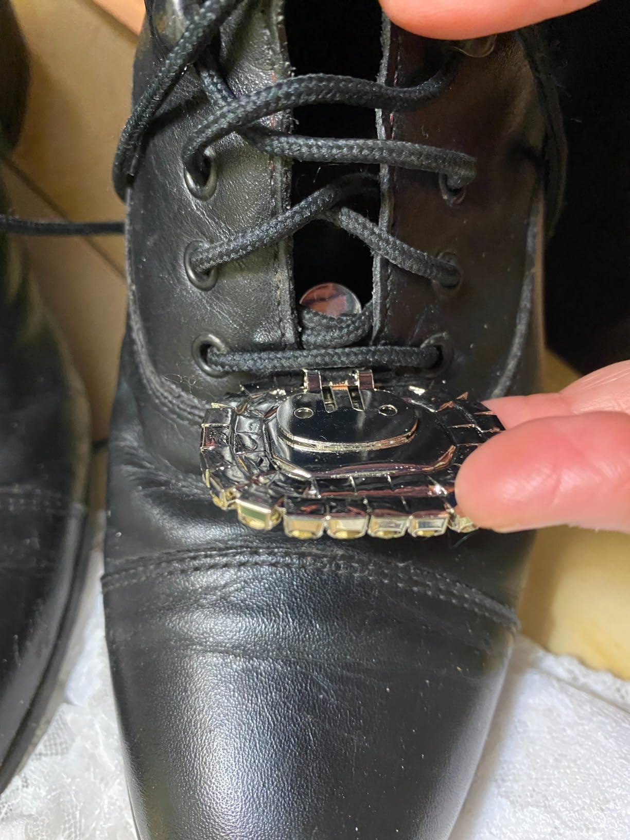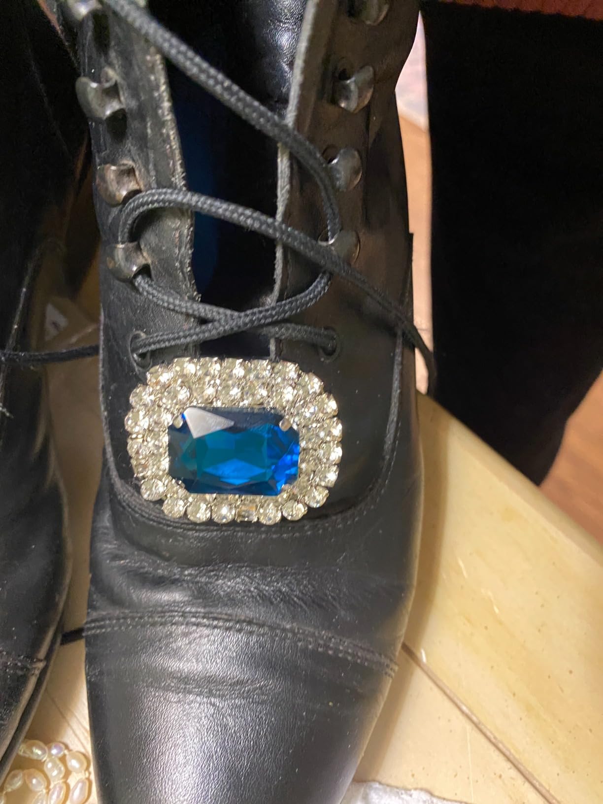 07-08-2025Bought the blue rhinestone clips. They are just as the pictures show, and the clip is strong. I actually am using them on a pair of lace up black boots, to put some color on them. I am doing presentations in an 18C gown, etc, and there are no shoes I can find that fit my feet comfortably. So... these ugly boots still work but they are incorrect for the period. The pair of clips do a good job of adding some better look to them and they are mostly hidden under the gown. lolAt any rate... the clips have to be placed over the bottom 2 laces, as these are not shoes. In case anyone wants to do that too... it works fine and the clips are in quite firmly! You have to get the clip part under the top shoelace there, and the 2 that cross each other underneath that. Then it's secure. See pics. So for you lace up boot wearers - have at it! :) I'm sure they work perfectly for a normal pair of shoes too.Bought a red pair too, for my Christmas gown.