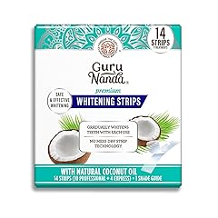 About this item Reveal a brighter smile with GuruNanda Teeth Whitening Strips. Our dry-strip formula combines hydrogen peroxide with soothing coconut extracts, helping to break down stains & whiten teeth. Our strips offer superior adhesion for hassle-free application & stay put for up to 60 minutes for effectively whiter teeth. For best results, avoid eating, sleeping, or smoking while using the strips. Our kit consists of 7 treatments (5 professional, 2 express). Each treatment has two strips covering both upper & lower teeth. Experience noticeable effects quickly with our express treatment! Apply regularly to brighten your smile. Use at home, office, during travel—anytime, anywhere. Our easy-to-peel-off strips helps to remove hard stains from coffee, wine, and smoking. Our product is vegan, and crafted in an FDA-registered facility for a secure dental care routine.