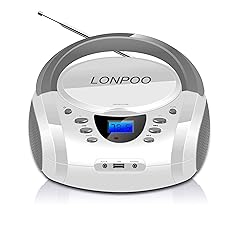 LONPOO CD Players Portable Boombox with FM Radio/USB/Bluetooth/AUX Input and Earphone Jack Output, Stereo Sound Speaker & Audio Player,White