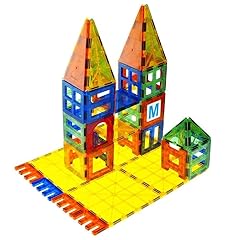 Magnet Tiles - Clear Magnetic 3D Building Blocks - Educational Toys, Games, Activities, Puzzles - Creativity, Motor Skills, Learning Shapes - Storage Bin, 2 Car Base, 120pcs, 13 Click-Ins