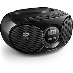 Philips Portable CD Player Boombox, Stereo Dynamic Bass Boost Speakers, Lightweight FM Radio CD Player with LCD Display, USB Playback, Aux Line-in, Boombox Portable for Home AZ318B/37