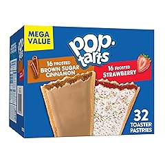 About this item Soft toaster pastries with the flavors of brown sugar cinnamon or frosted strawberry; Both varieties topped with delicious frosting These soft toaster pastries with frosting on the outside and gooey filling on the inside are a convenient family favorite Good source of three B vitamins; Contains wheat and soy ingredients A travel-ready food perfect for breakfast, after-school snacks, and on-the-go moments; Enjoy from the pack or warm from the toaster or microwave Includes one, 54.1oz box containing two, 27oz boxes of Pop-Tarts; 32 toaster pastries, 16 pouches total, two pastries per pouch