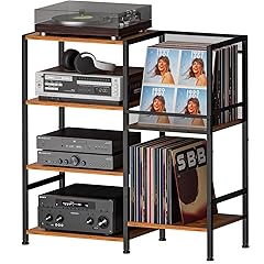 Record Player Stand Table with Vinyl Record Storage Holder-Up to 200+ Albums, Small Media Cabinet Console Table Stereo Stand Tower, Audio Video Shelving/Turntable Stand Shelf for Entertainment Center