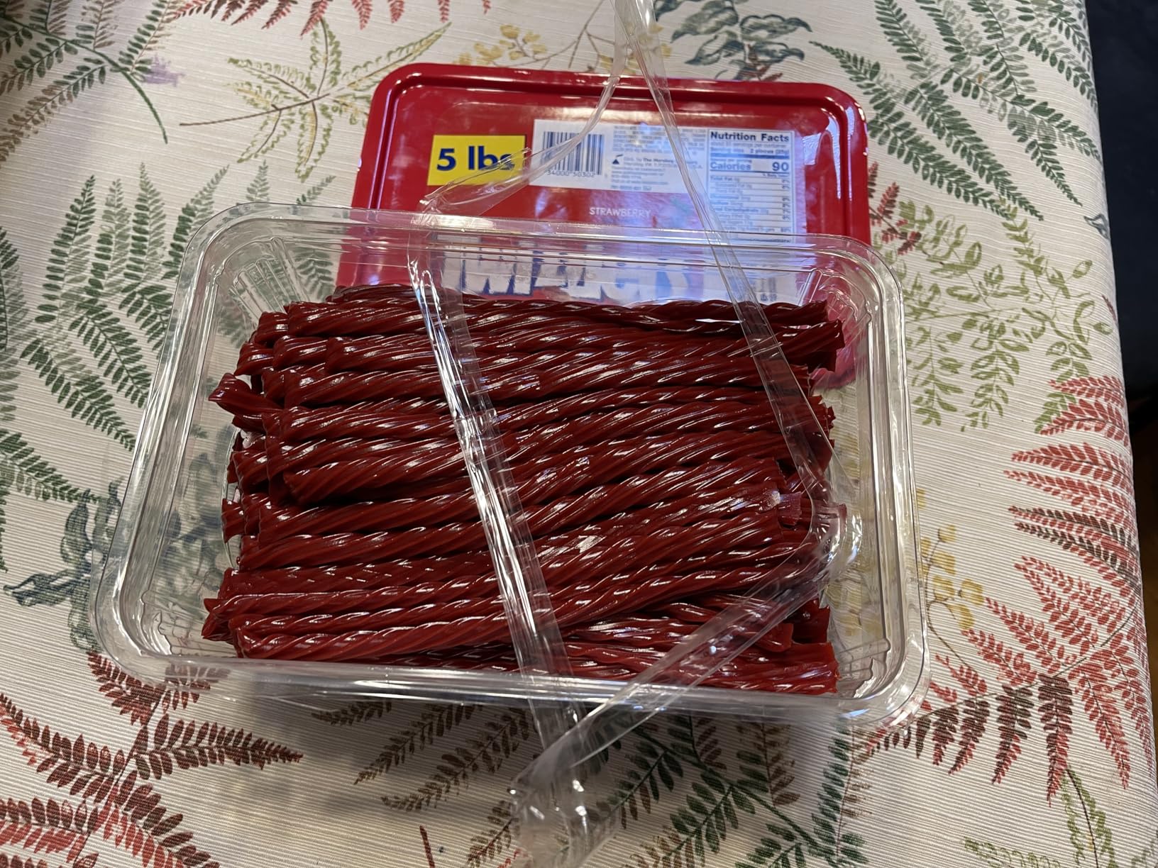 08-08-2025This 5 pound box of or tub of licorice TWIZZLERS Twists Strawberry Flavored Licorice Style, Low Fat Candy Tub, 5 lb size, was delivered to me on February 10, 2025. They looked ok in the tub, althought what I was really looking for was for just packs of Twizzlers Strawberry Flavored TWIZZLERS.At the same time I ordered "Twizzlers Black Licorice Twists (Pack of 4)". Both were delivered on February 10, 2025.I've ate two of the black licorice packs and they are still fresh and very soft and delicious, HOWEVER, my wife decided to open the TUB of the Strawberry Flavored Licorice on March 25, 2025 and although they appeared to be still sealed, they were definitely not sealed well enough whatsoever.When you try to take one or even a few of these strawberry TWIZZLERS out of the box they are hard to take out. It's no wonder because when you attempt to eat them, well, they are HARD AS A ROCK.You really can't chew into them unless you really want to hurt your teeth or possbily break one.Why on earth are they so HARD? In comparison, the black TWIZZLER licorice sticks are really soft and delicious.Unless you intend to suck on a very hard Strawberry TWIZZLERs I would NEVER buy a tub of these ever again.I know it's about two weeks past the return date so I guess I'm out of luck.but bEWARE, if you decide to try eating any of these licorice pieces from the TUB, you will be very disappointed and disappointed at just how HARD they really are.I rated them one star but would have only gave them one-quarter of a star for Amazon actually delivering them to me.I will not be eating these shown in the pictures because they are going to be thrown out in the thrash.What a waste of my money.It's best to NEVER order the tub size, but try to buy a pack of a very smaller quantity of them.You can buy the small packages very easily at CVS, Walgreens and other stores, but these TWIZZLERS in the TUB that were ordered from and shipped from Amazon don't even meet the 1 star quality test.Look at the cheap flimsy tiny plastic that wrapped the tub is supposedly some kind of seal. Cheap as all heck.If there were a way to show you how hard they are, I would have loved to show you that.What Hershey SHOULD have done was to seal them in air tight packaging, but unfortunately Hershey doesn’t do that or care about their customers.
